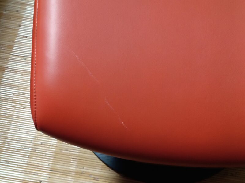 オットマンのひっかき傷を綺麗に部分補修しました。詳しくは「革修理ブログ」をご覧ください(*^-^*)