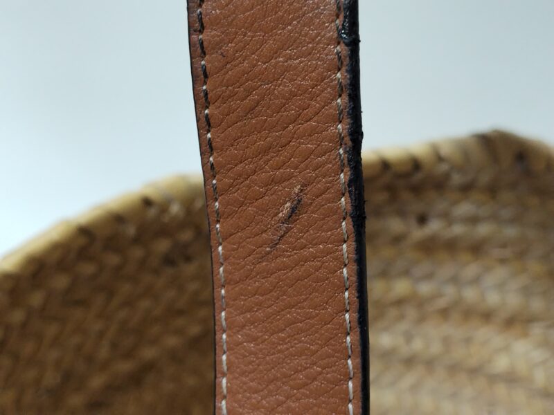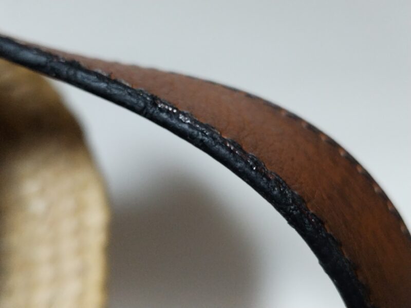 【ロエベ バッグ修理】溶けてボロボロになった持ち手のコバを綺麗に再生