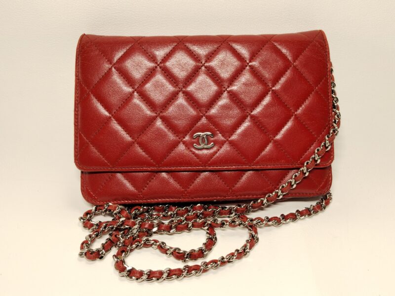 お品物は、シャネル マトラッセ 赤のチェーンウォレット。