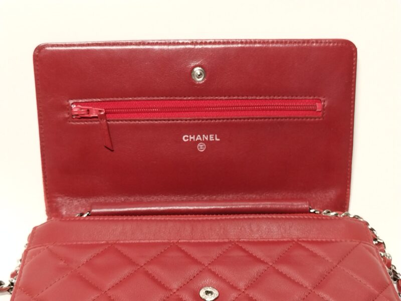 内側外側ともに、真っ赤なマトラッセのチェーンウォレットです。