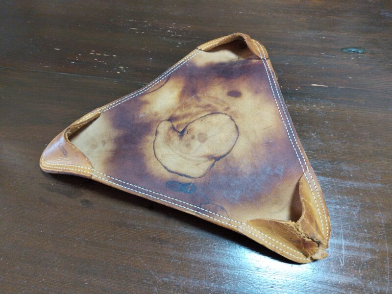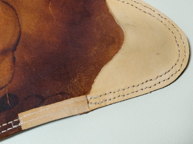 新しいヌメ革で脚留めを製作し、再縫製を行いました。