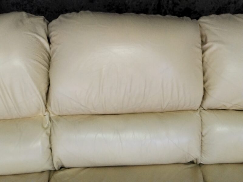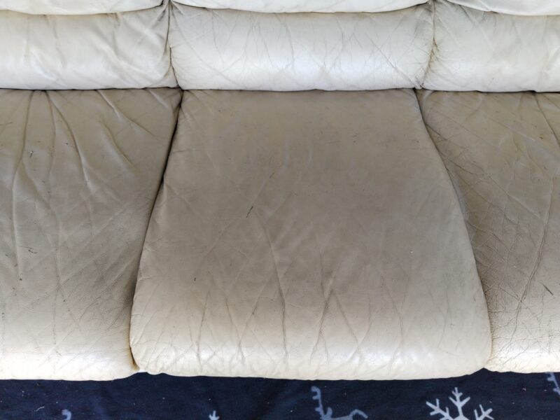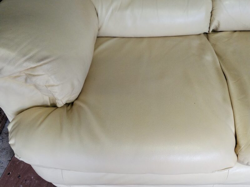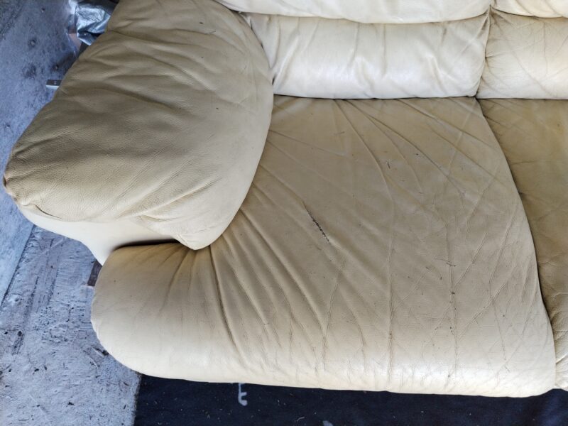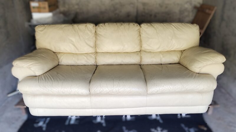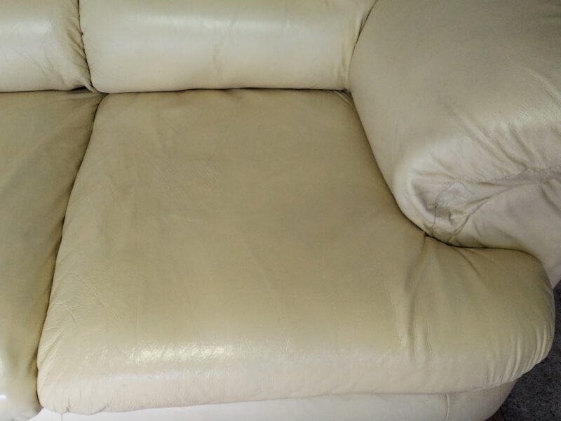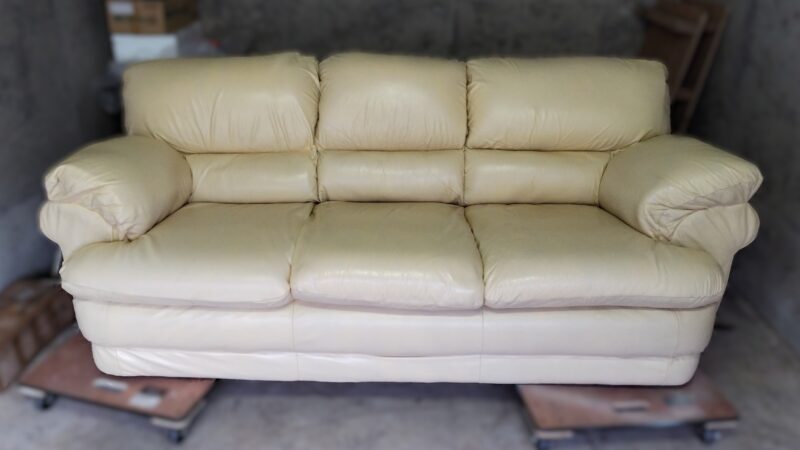 【3人掛け革ソファ修理】破れ、猫の爪傷、黒ずみなど全体修理で綺麗に!
