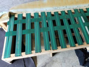 ソファの座面を支えるウェービングテープが伸びてたるんでいましたので、一旦取り外して貼り直しました。