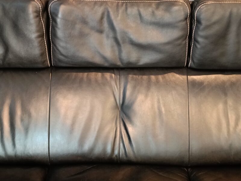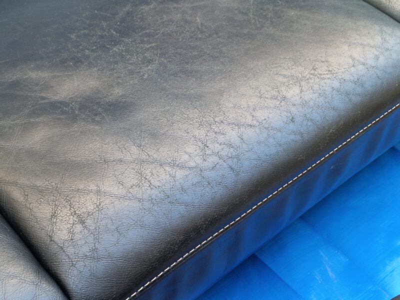 背もたれなどの革の継ぎ目を中心に、表皮が剥がれて白くなっている箇所があります。