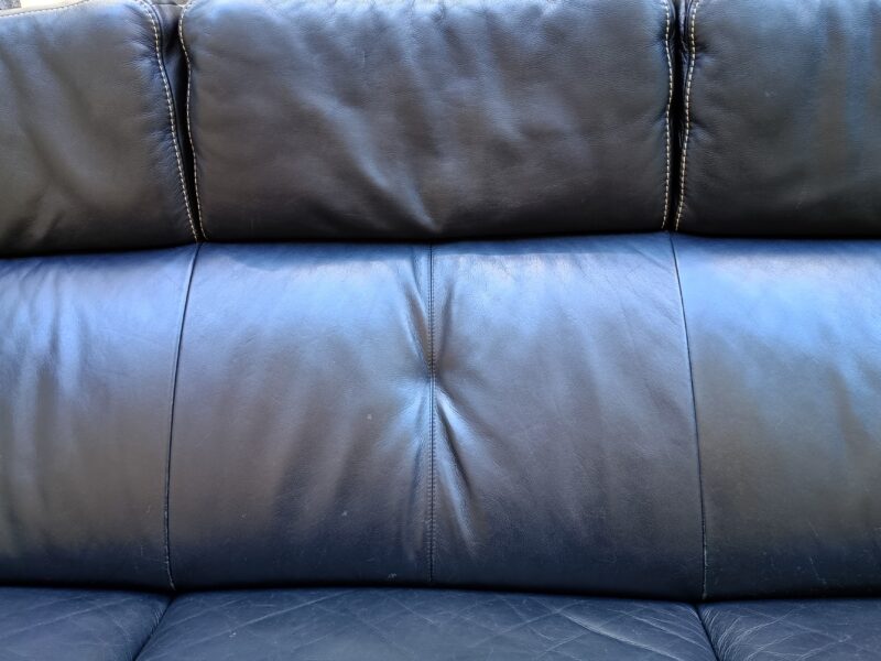 背もたれの革のつなぎ目の剥がれも綺麗に補修されています。