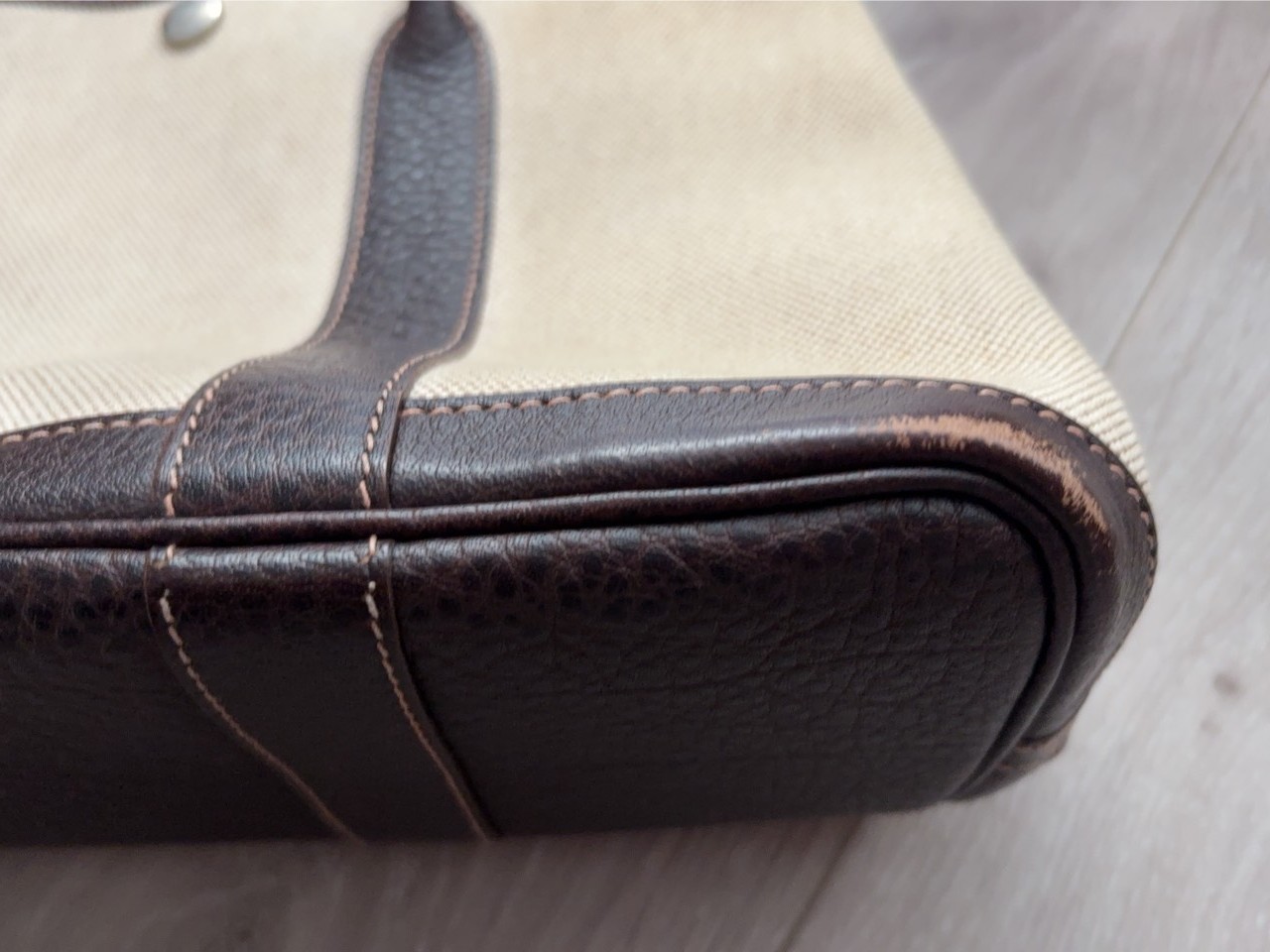 本日ご紹介したバッグも、底の4つ角だけ、スレて色が剥げていました。