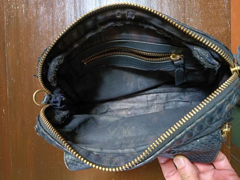 【パイソン革バッグ修理】内装、ファスナー交換、全体ダメージ補修で美しく再生!