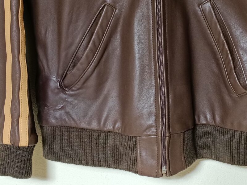 【革ジャケット修理】液体がしみて乾燥し変形してしまった部分を修復