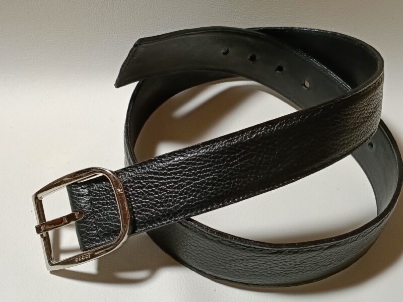 グッチのロゴ入りのバックルはそのまま使い、ベルトの革全体を交換しました。