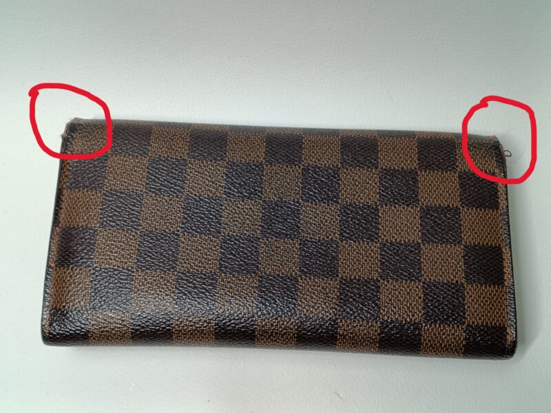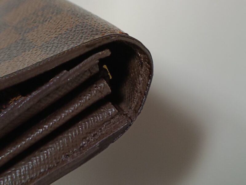 【ルイ・ヴィトン財布部分修理】折り曲げ部分の糸ほつれ、コバの傷みを綺麗に補修