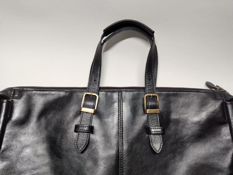 切れたショルダーベルトの根革を新規製作して交換しました。詳しくは「革修理ブログ」をご覧ください(*^-^*)
